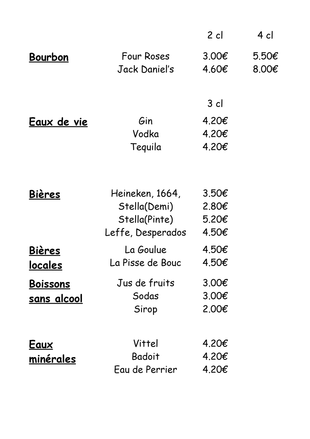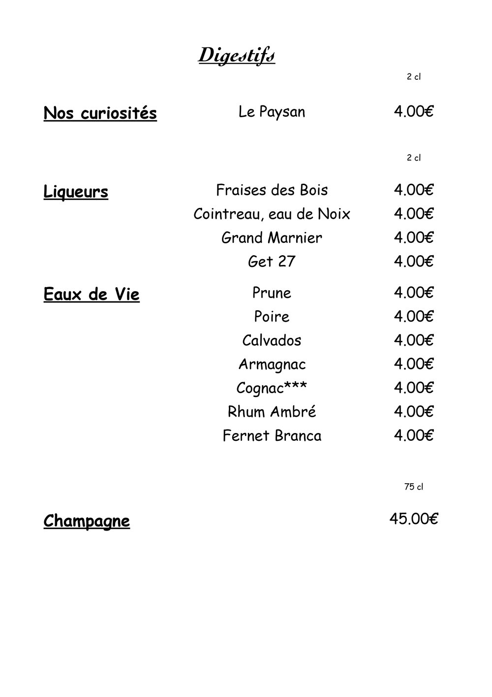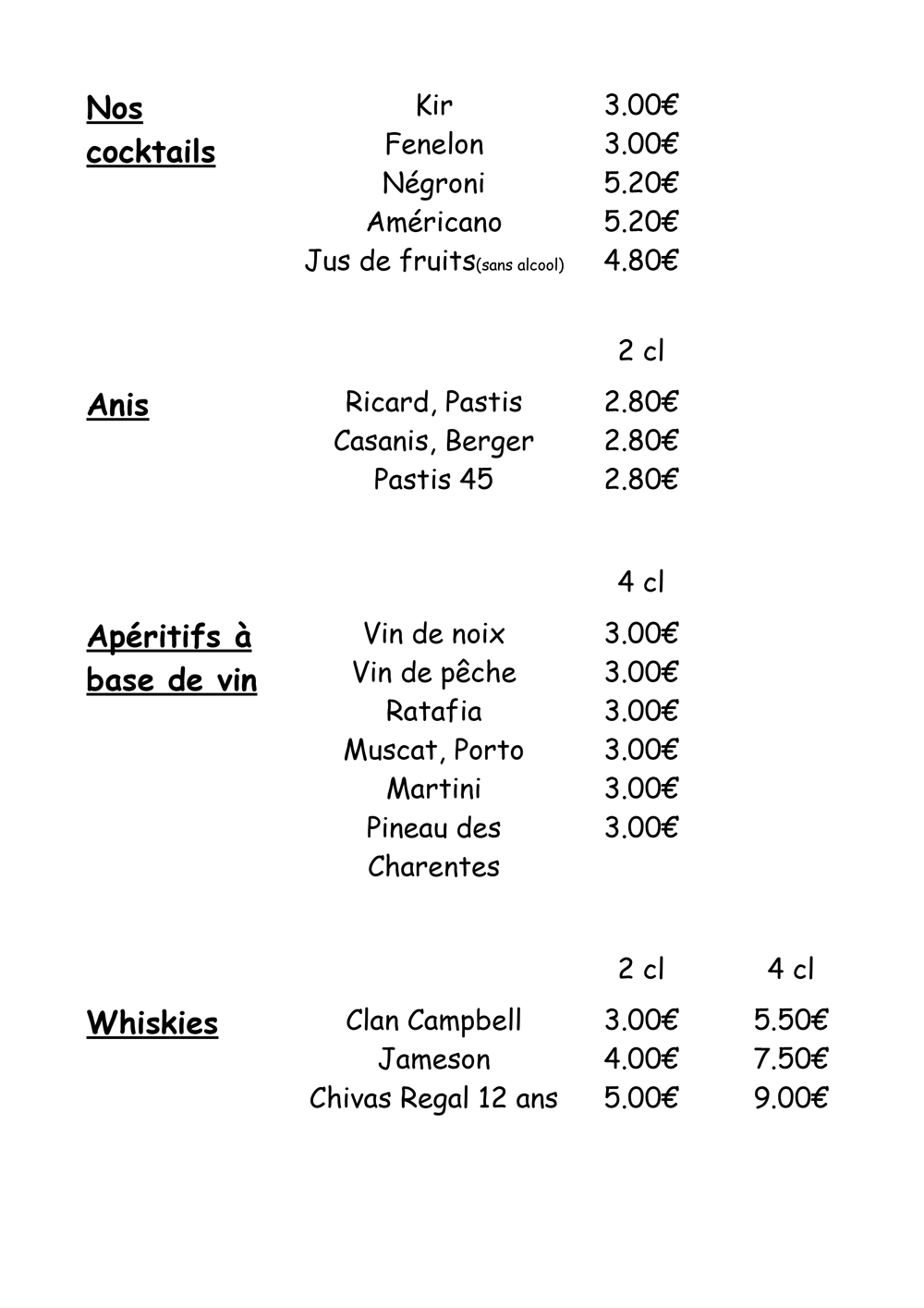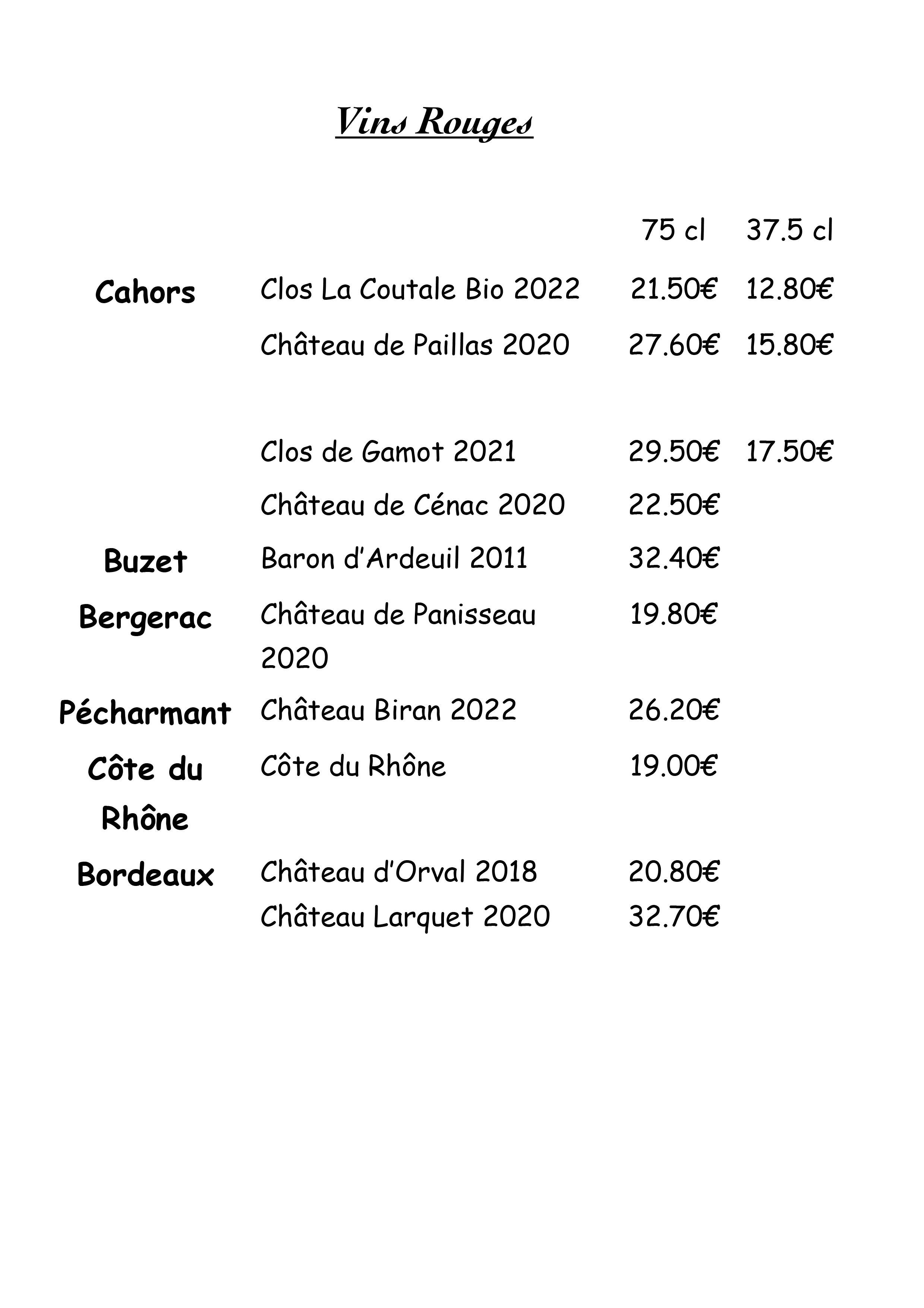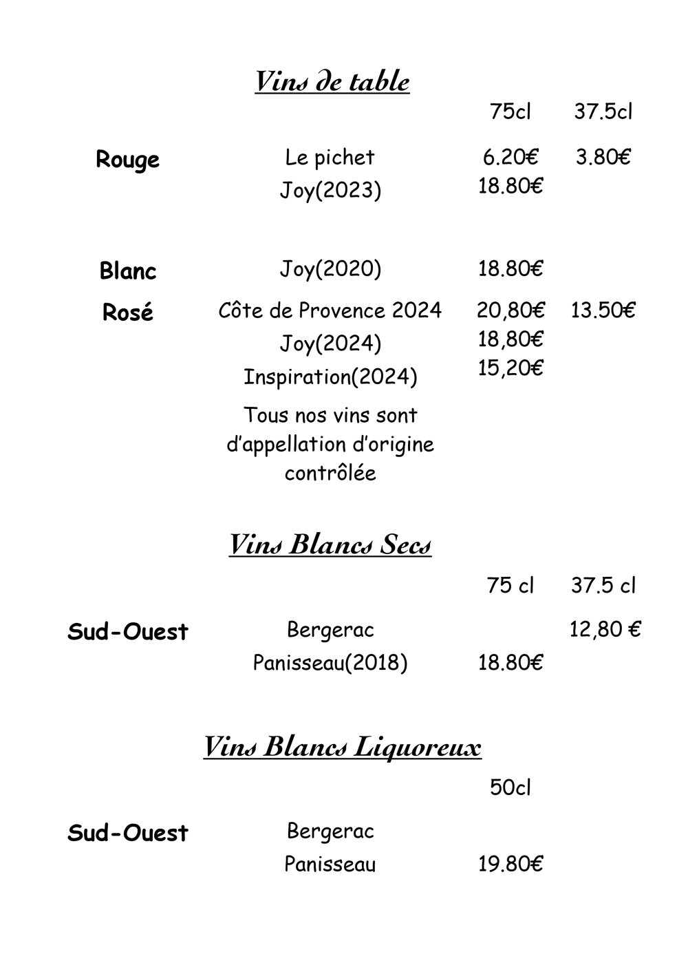 Carte des vins et boissons